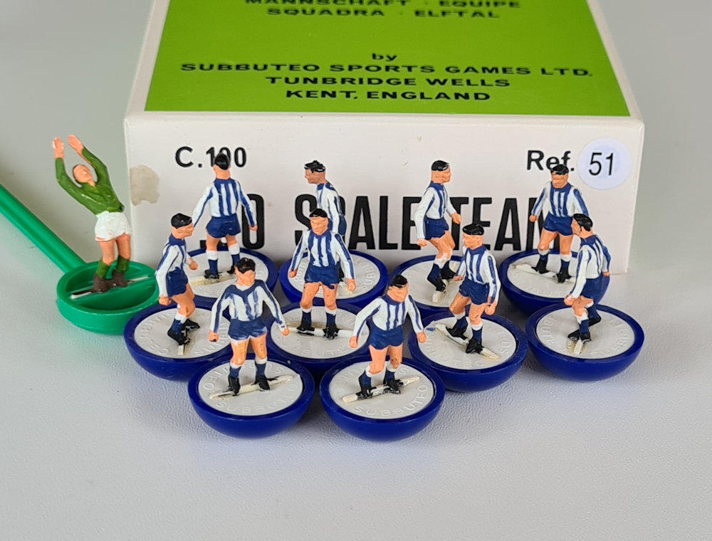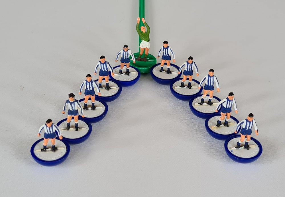 This is an original vintage ‘heavyweight’ Subbuteo Table Soccer team (ref. HW 51 Sheffield Wednesday, Brighton, Millwall etc.) dating from the 1970’s.